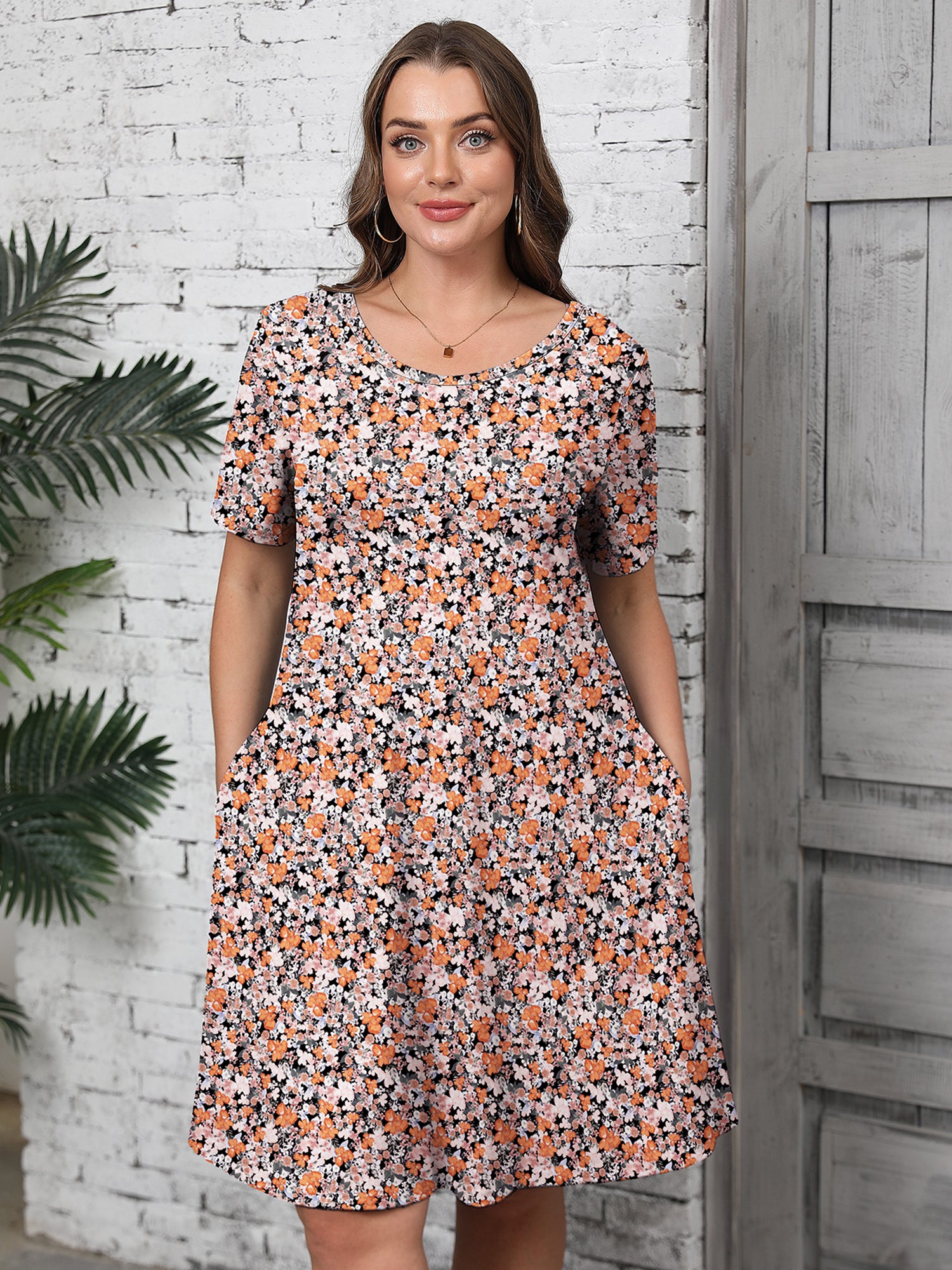 This plus size midi-length T-shirt dress is soft, stretchy, and comfortable, making it perfect for all body types. With its flowy swing design, it feels gentle on the skin and is ideal for summer wear. The practical side pockets add extra convenience. Perfect for various occasions, this versatile dress can be worn casually around the house, at the office, or on a beach holiday. Dress it up with jewelry, sandals, or boots for a stylish look that’s both relaxed and fashionable.