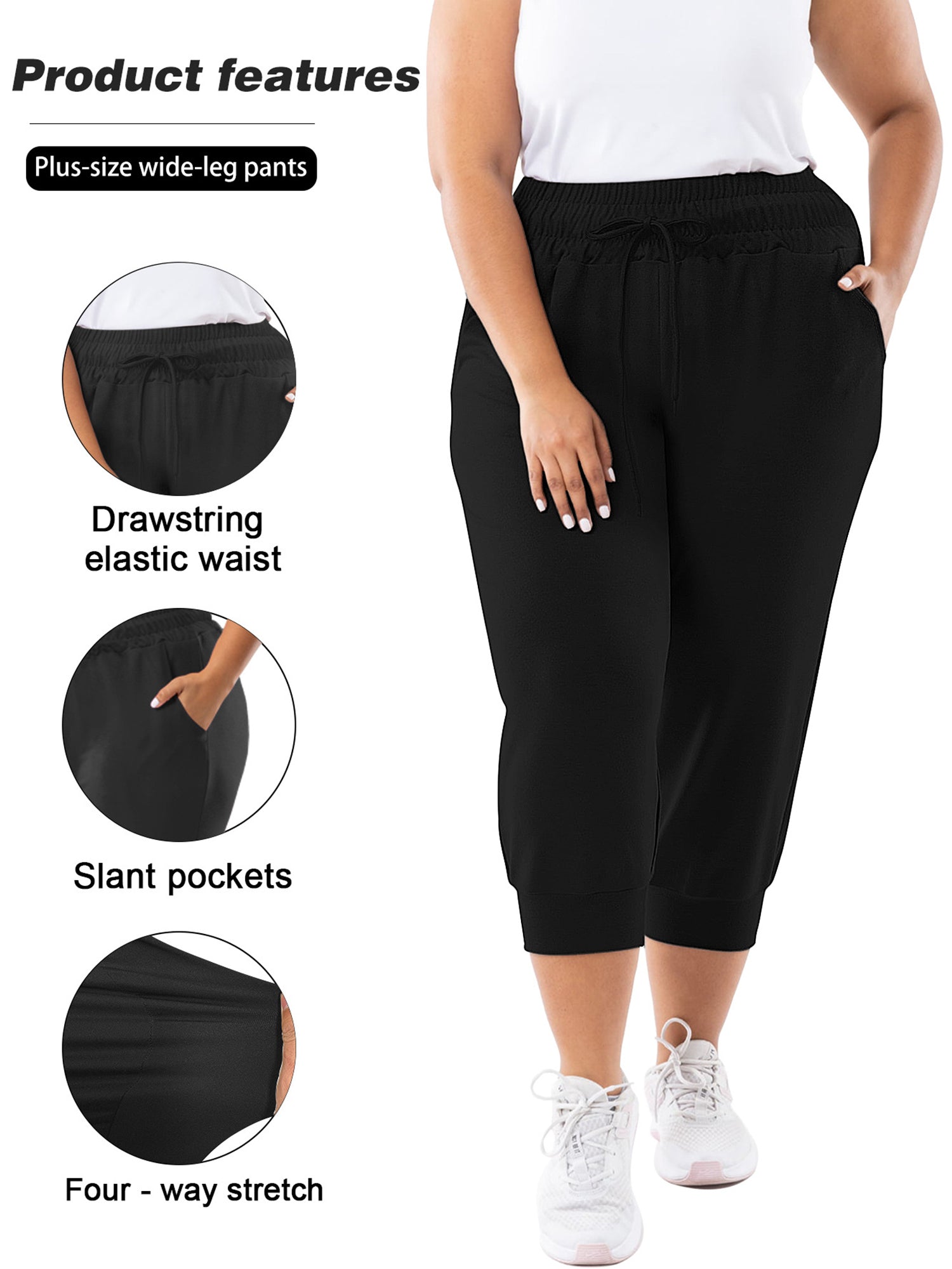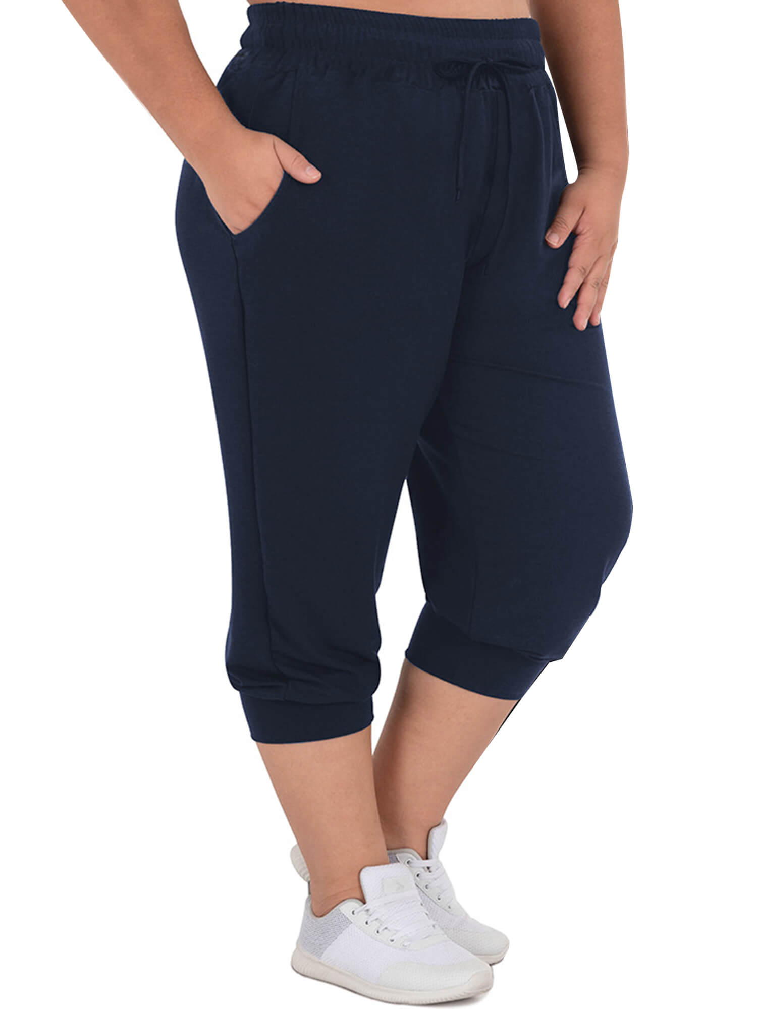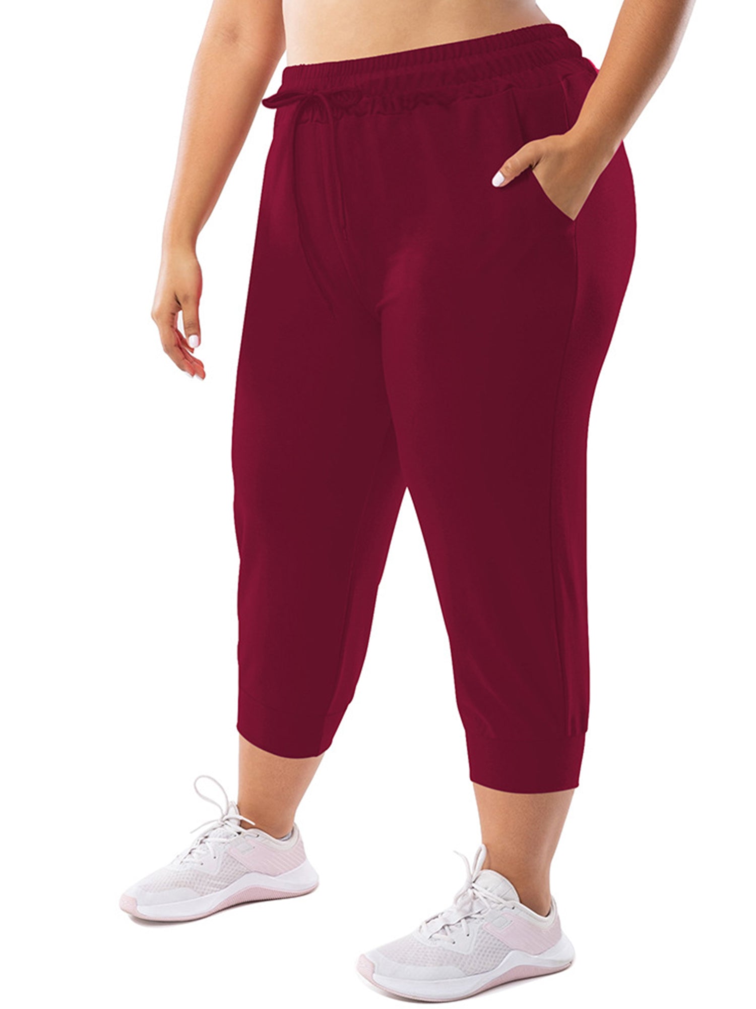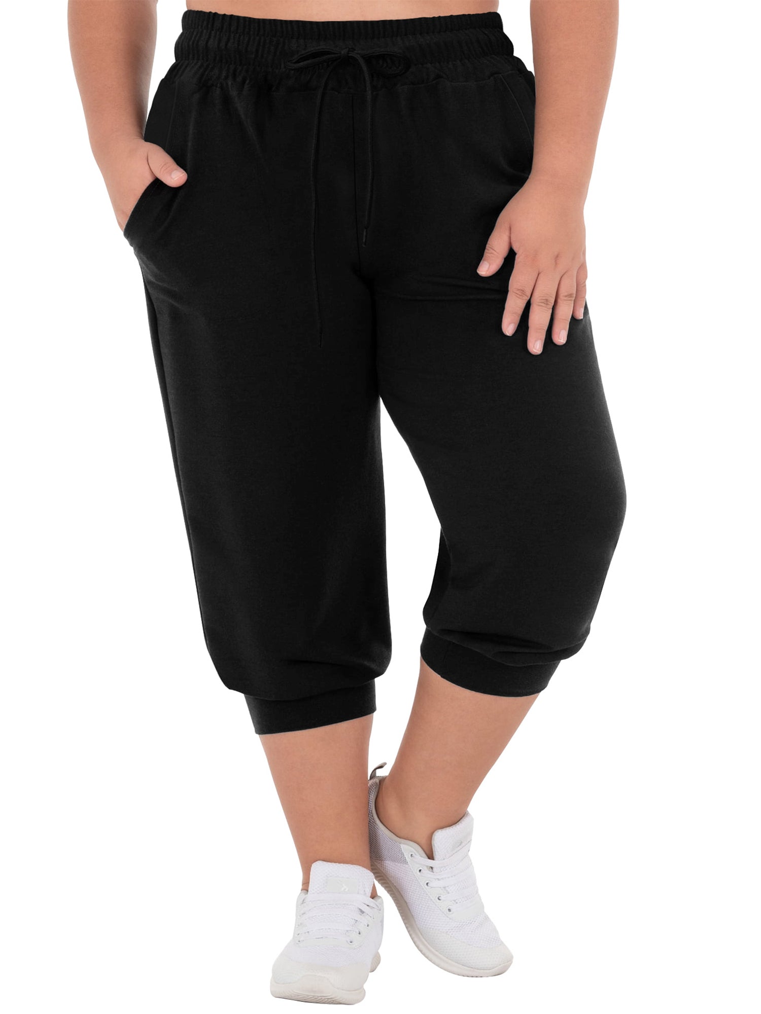 Womens Plus Size Joggers Pants Casual Active Capri Sweatpants with Drawstring Pockets