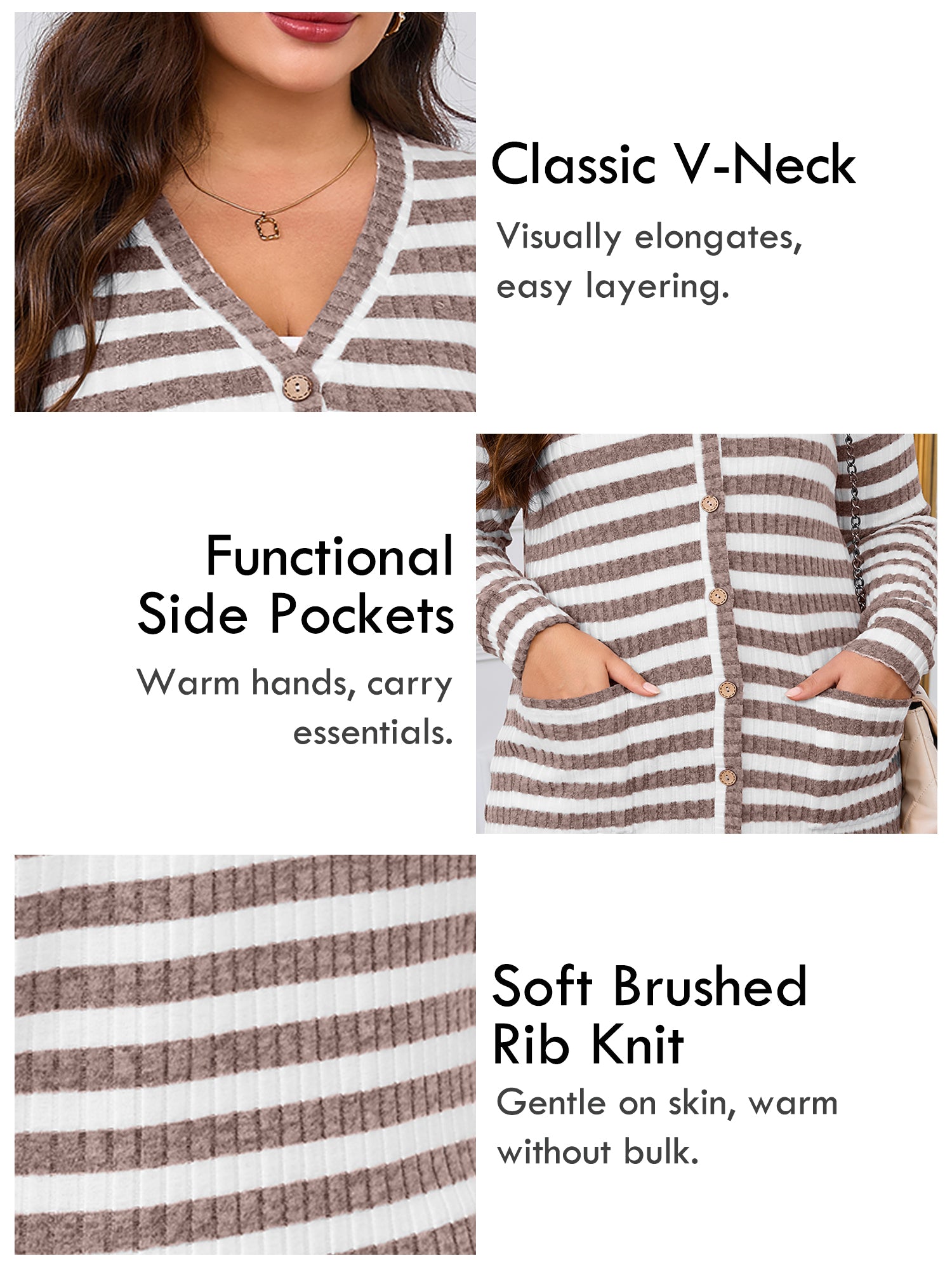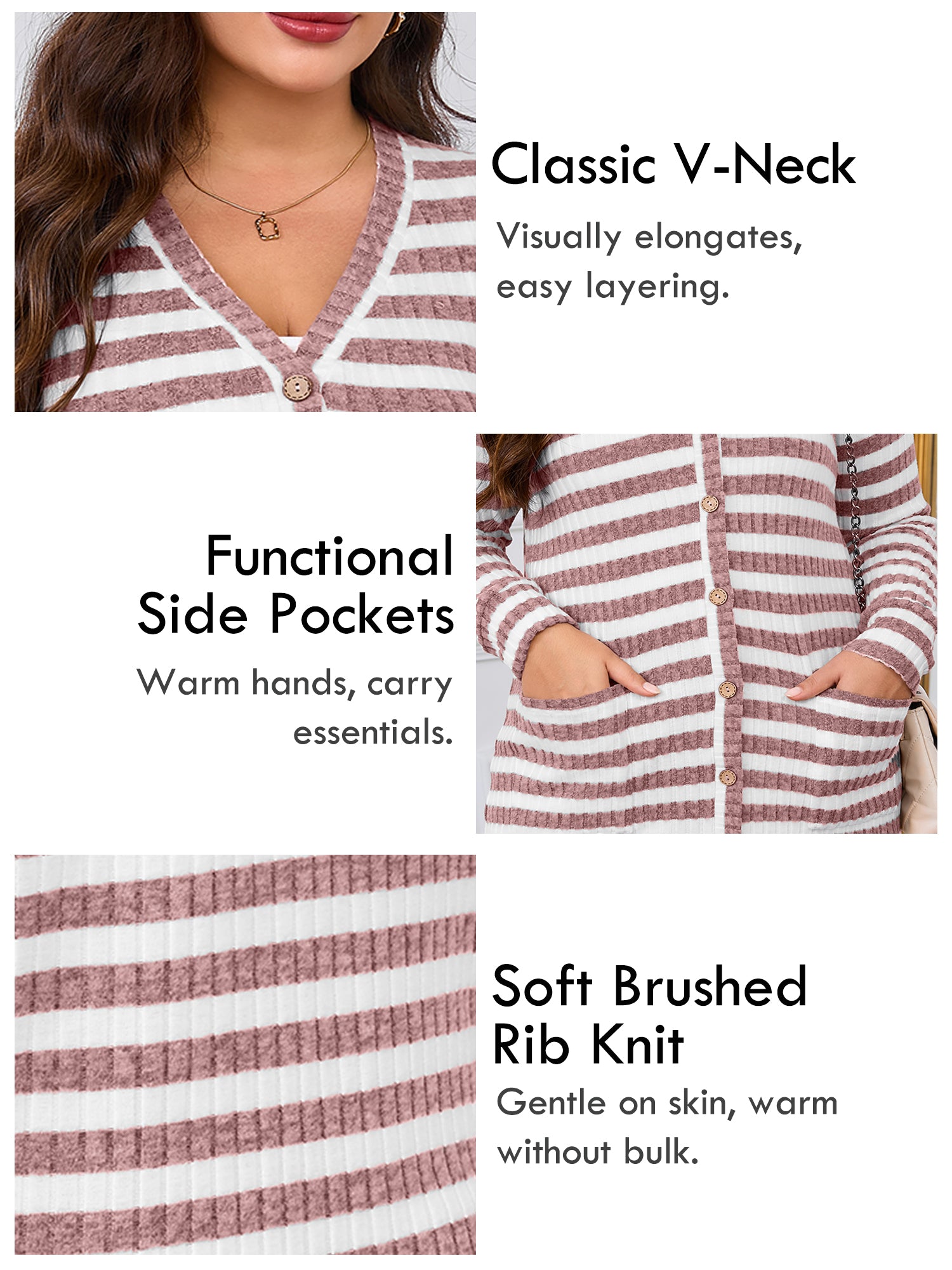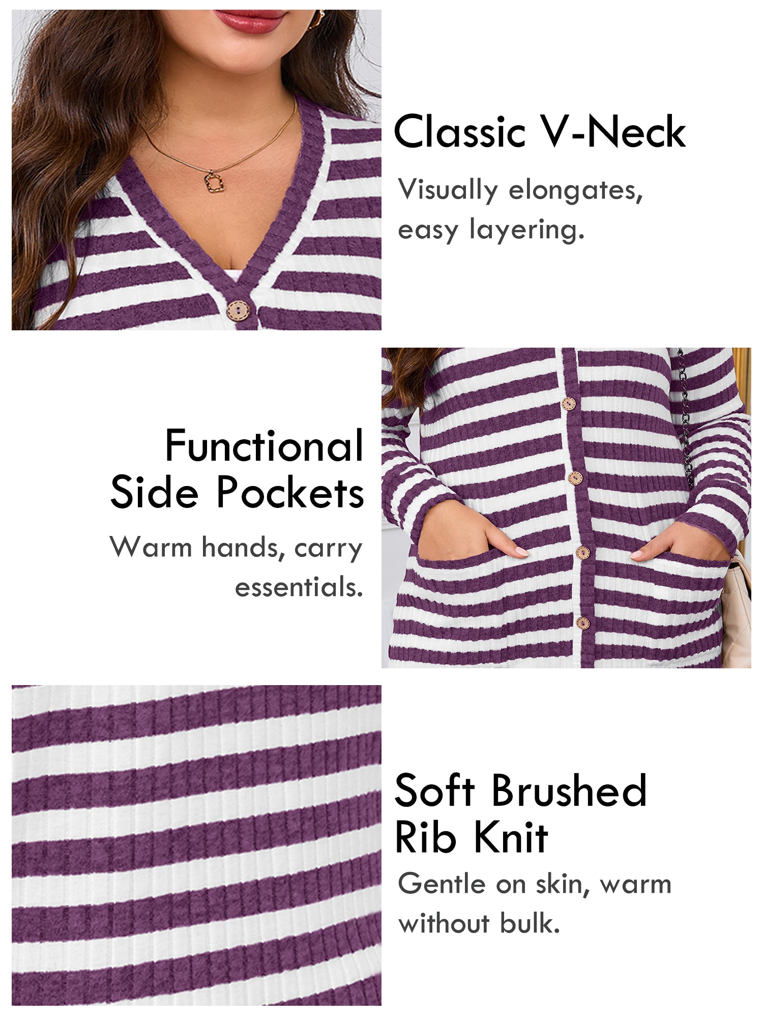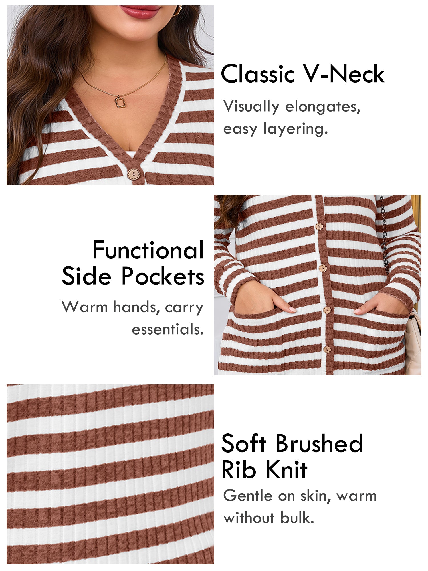 - COZY & STRETCHY FABRIC: Crafted from a soft ribbed knit with a fuzzy brushed texture, this women’s plus size cardigan is breathable, cozy, and comfortable for all-day wear. The fabric offers gentle stretch for an easy, flexible fit.