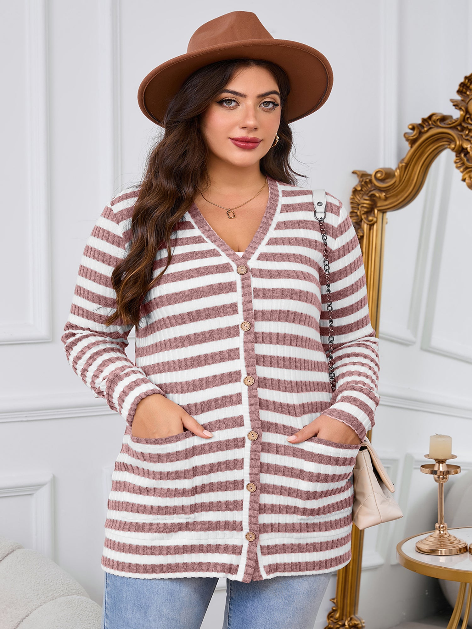 This ribbed knit sweater designed with a flattering V-neckline, functional front buttons, and roomy side pockets, it’s a versatile layering piece perfect for chilly days in spring, fall, or winter. Pair it effortlessly with jeans, leggings, or dresses for a chic everyday look.