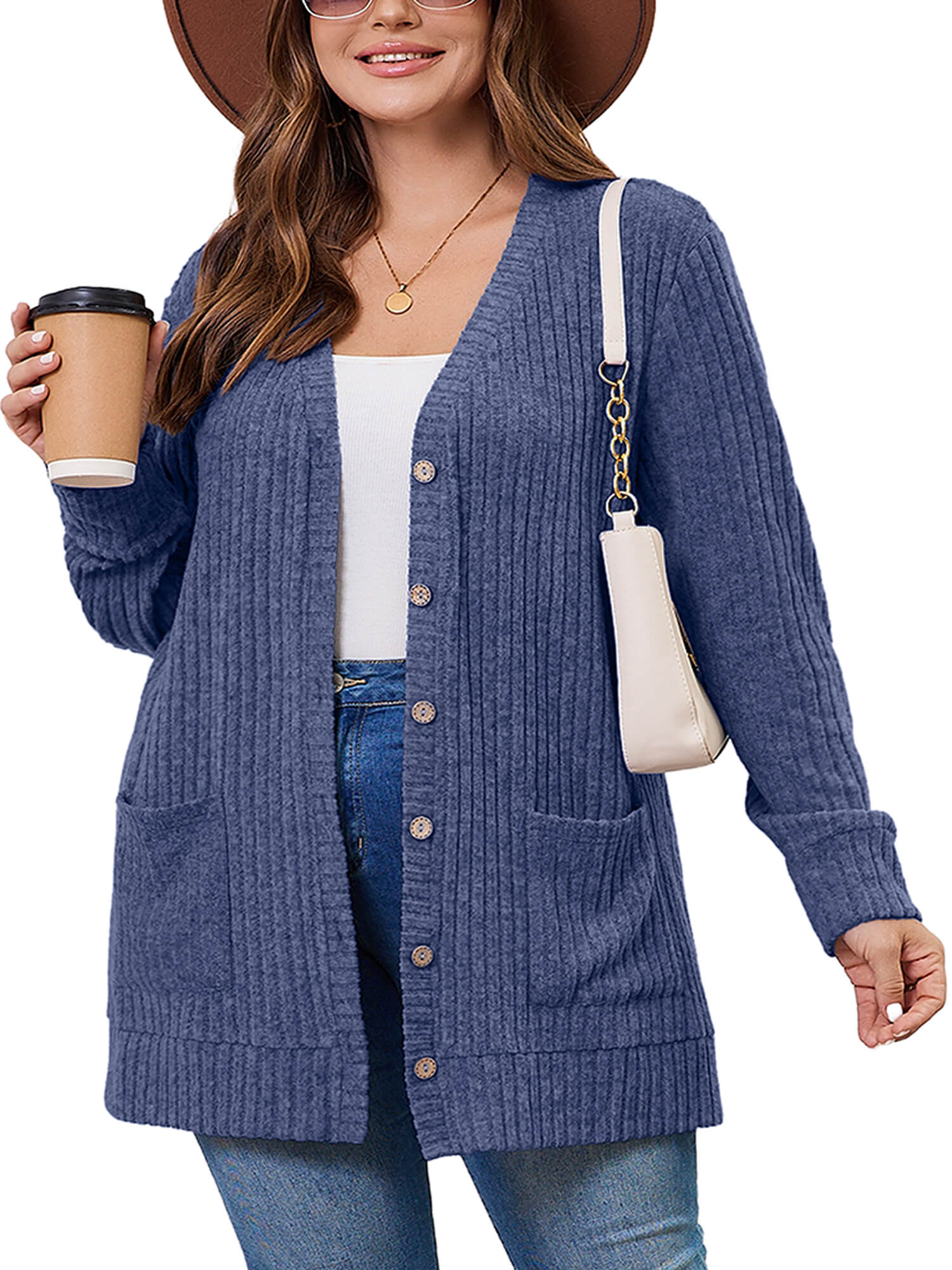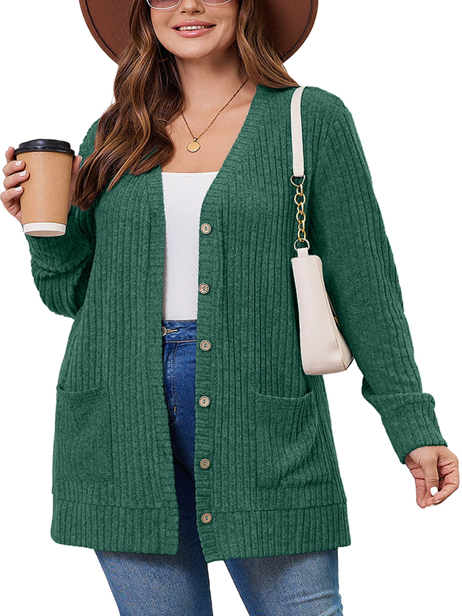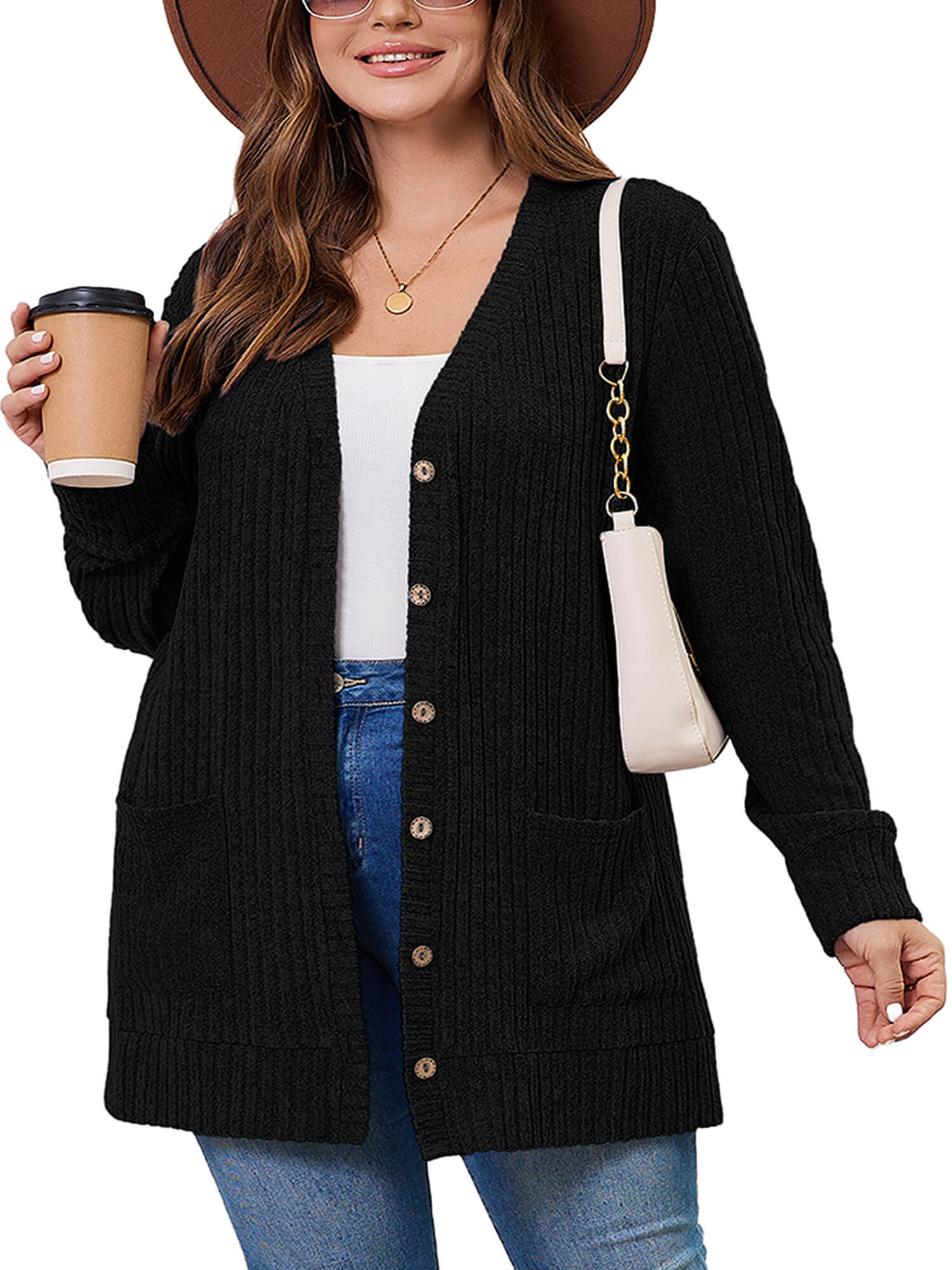 - COZY & STRETCHY FABRIC: Crafted from a soft ribbed knit with a fuzzy brushed texture, this women’s plus size cardigan is breathable, cozy, and comfortable for all-day wear. The fabric offers gentle stretch for an easy, flexible fit.