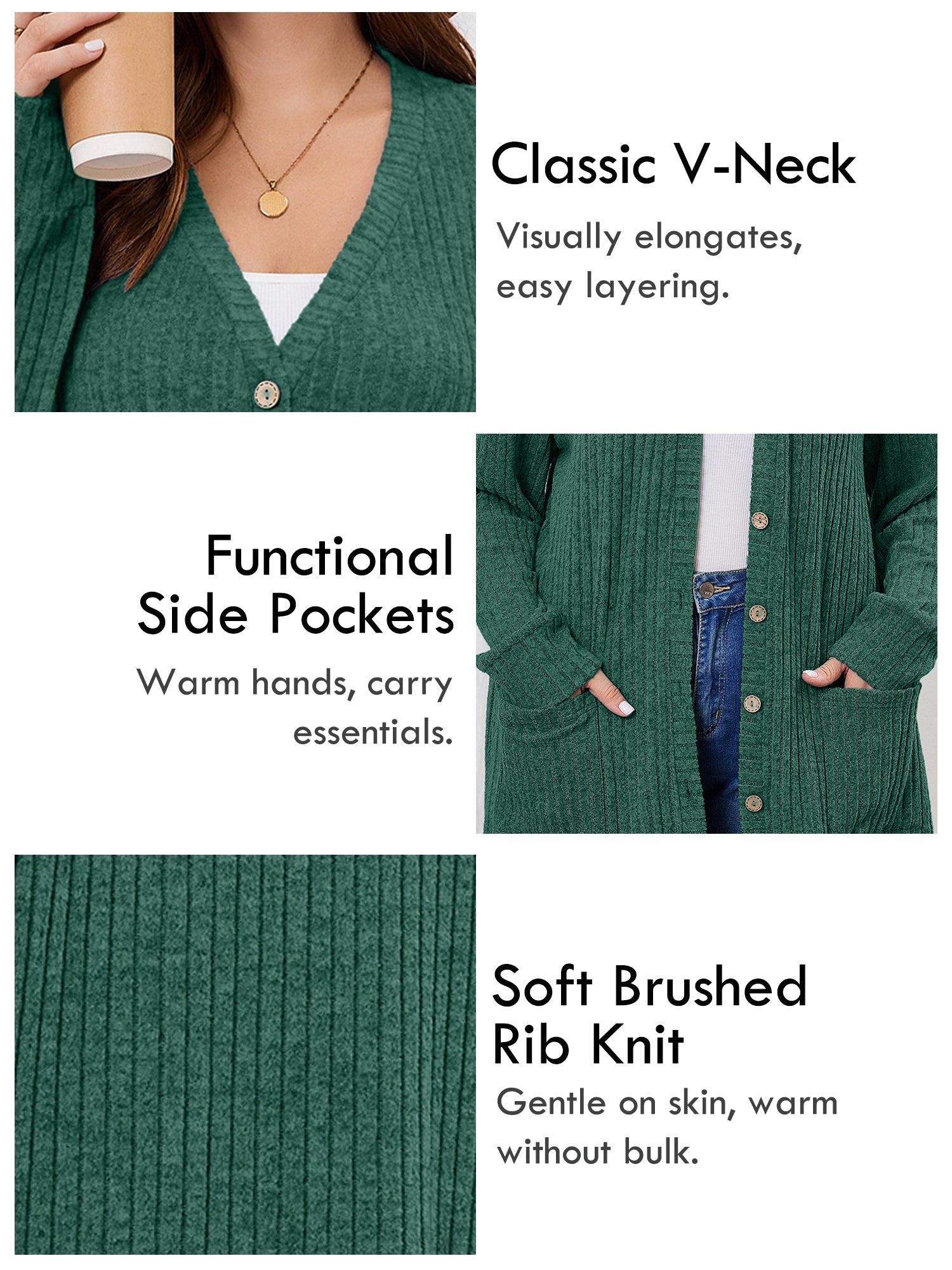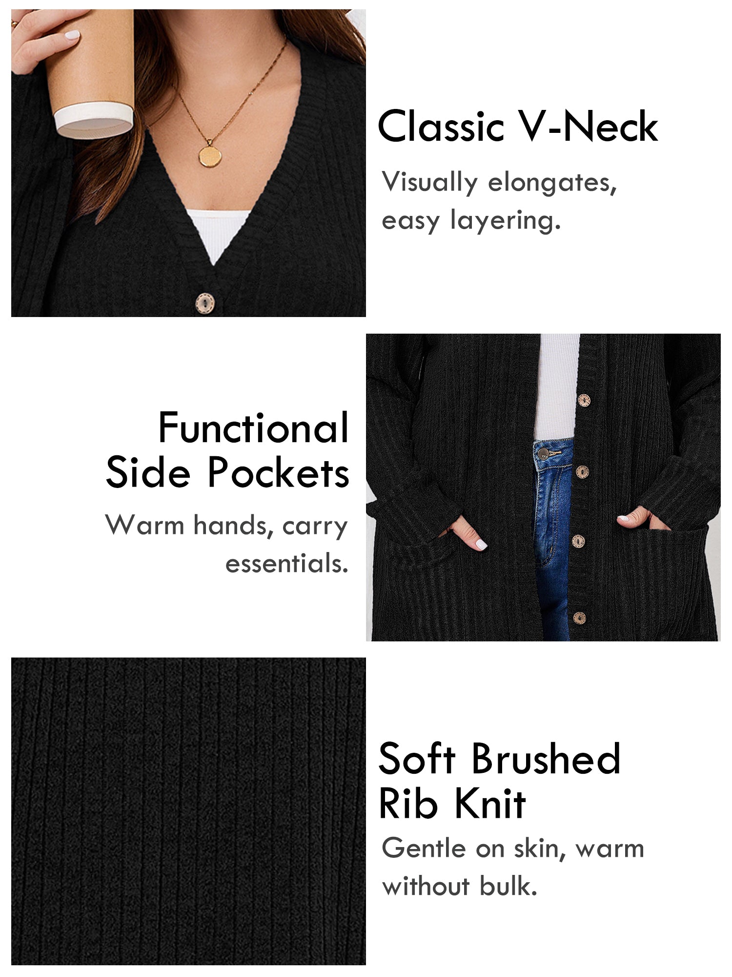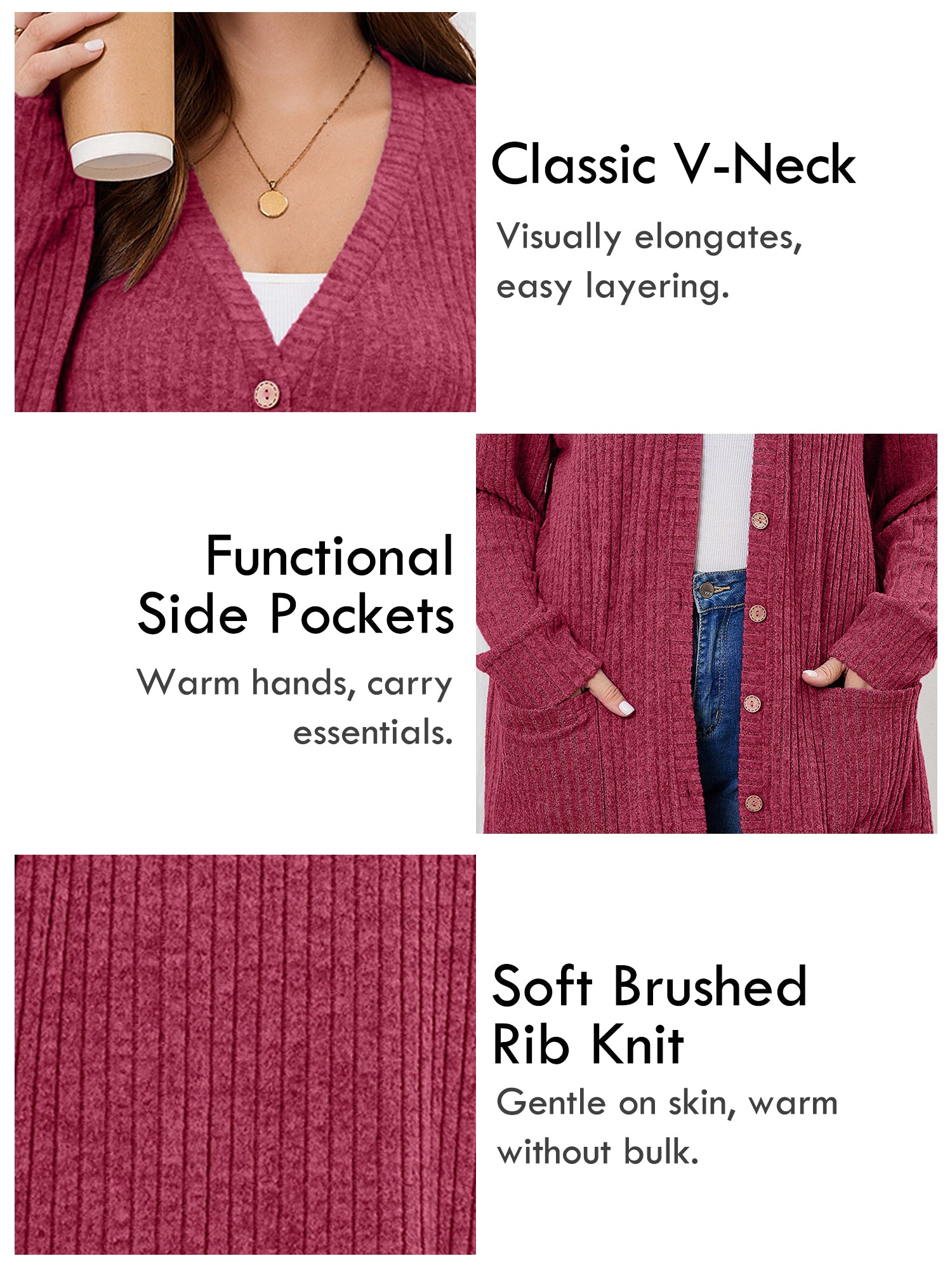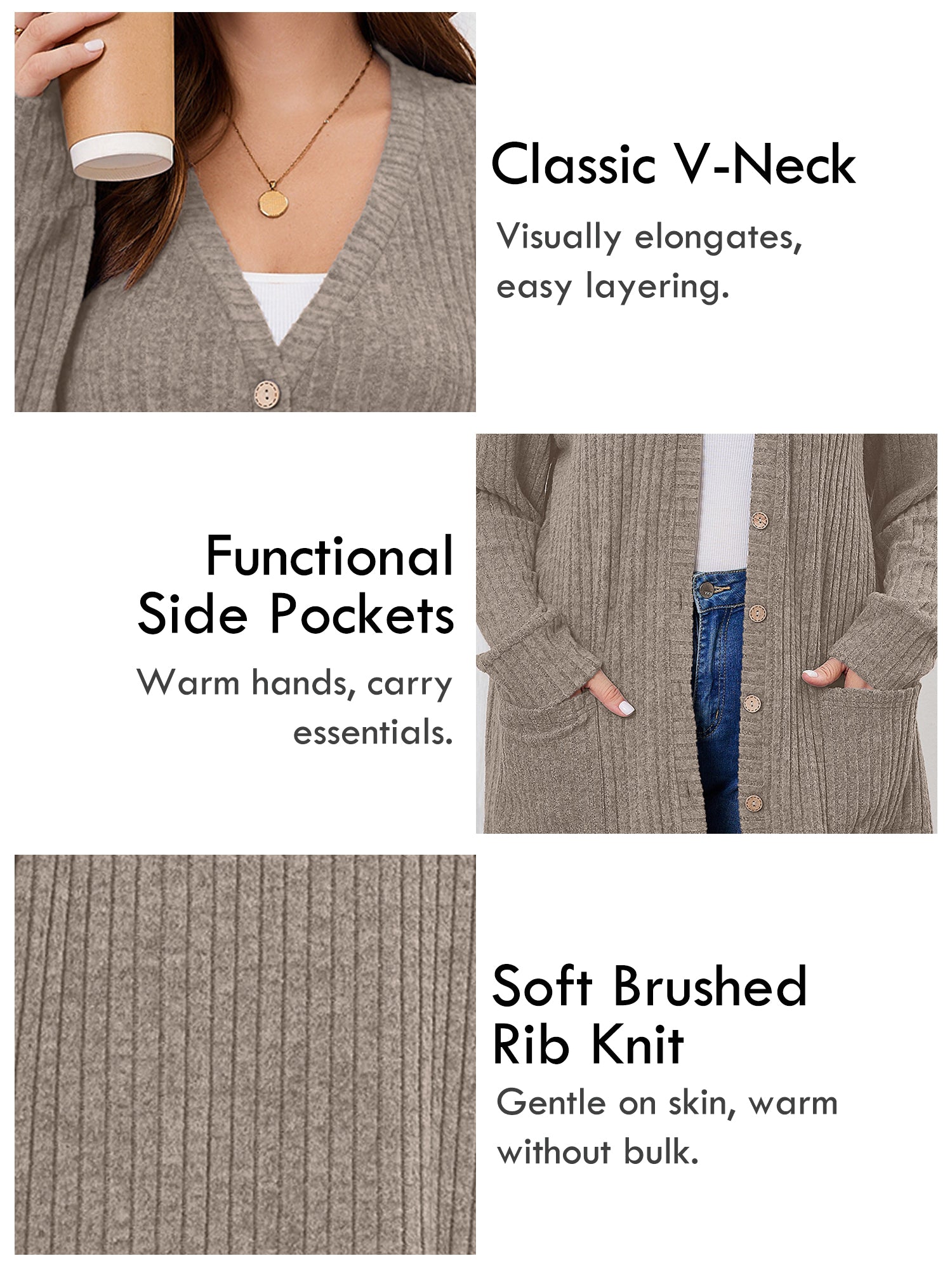 - COZY & STRETCHY FABRIC: Crafted from a soft ribbed knit with a fuzzy brushed texture, this women’s plus size cardigan is breathable, cozy, and comfortable for all-day wear. The fabric offers gentle stretch for an easy, flexible fit.